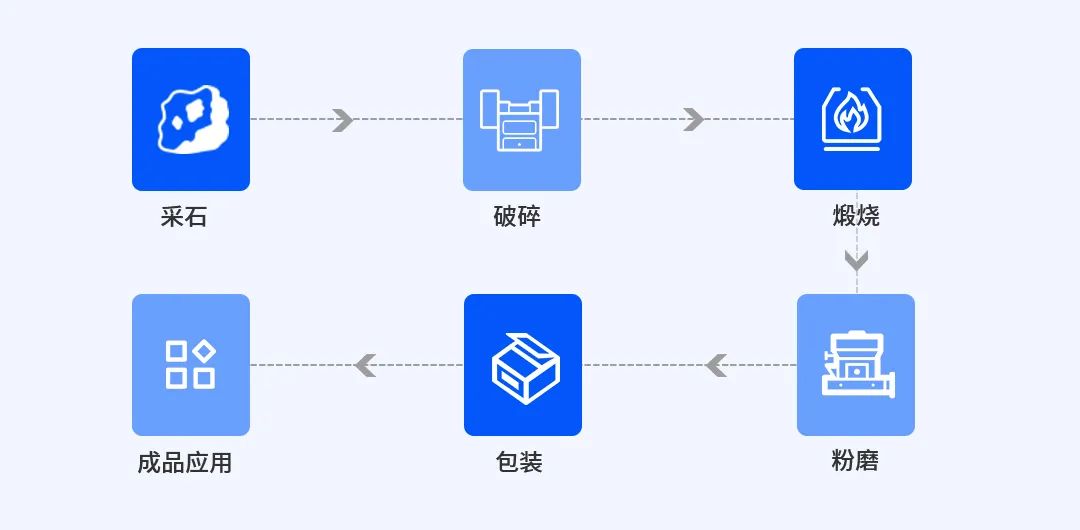 生石灰的工業(yè)化制備以石灰石煅燒為核心,涉及采石、破碎、煅燒、粉磨、包裝等多道工序。