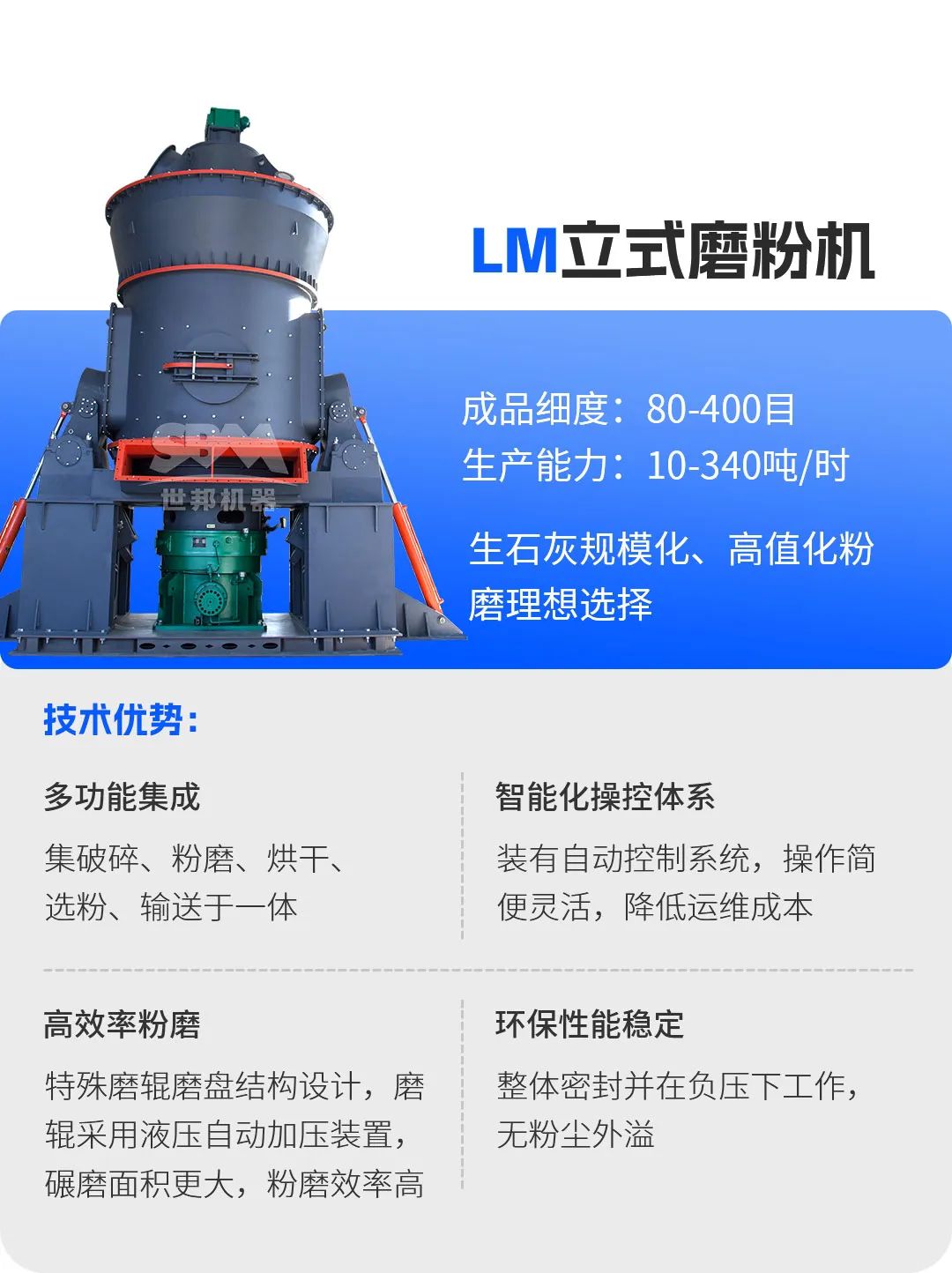 在生石灰煅燒過程中,煤粉質(zhì)量直接影響石灰窯的熱效率與產(chǎn)品質(zhì)量。上海世邦推出的LM立式磨煤機(jī),專為石灰窯配套煤粉制備設(shè)計。